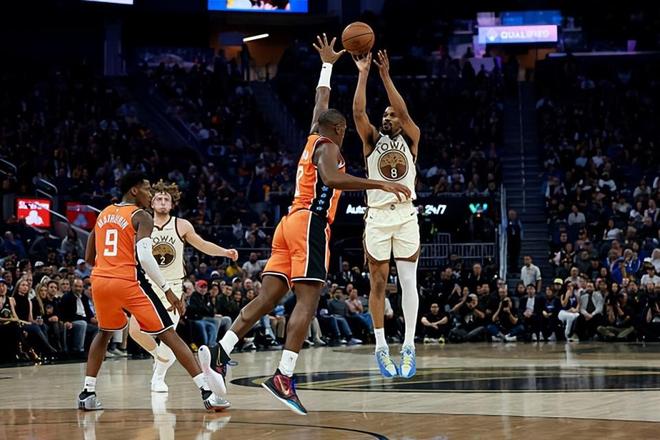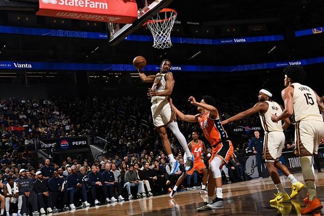 本场比赛中,勇士的先发后场大将丹东尼-梅尔顿(De'Anthony Melton)的表现实在是不太理想。梅尔顿全场出场27分05秒,投篮14中3,三分线外7中1,得到了7分4篮板2助攻1抢断的数据,还有2次失误和4次犯规,正负值为-16。梅尔顿在本场比赛中得到了大量的出手机会,然而他的进攻效率一塌糊涂,他的得分能力投射能力完全没有发挥出来,他浪费了大量的机会,而且他在进攻选择方面的问题非常明显。梅尔顿不仅在进攻端的表现不太理想,而且他在防守端的表现也有些不如预期,梅尔顿按理说应该是一名可靠的防守者,但是至少在本场比赛中,他在专注度方面也存在着一定的问题。梅尔顿在本场比赛中算是完全没有发挥出自己的价值,完完全全拖了球队的后腿。